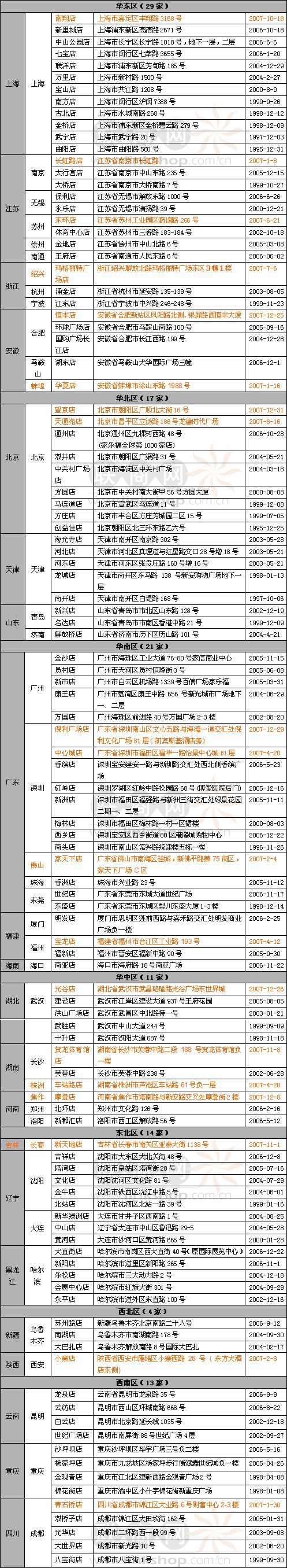 RE:家樂福2007年中國內(nèi)地門店數(shù)量及區(qū)域分布“新” 時間:2007.1.1~2007.12.31