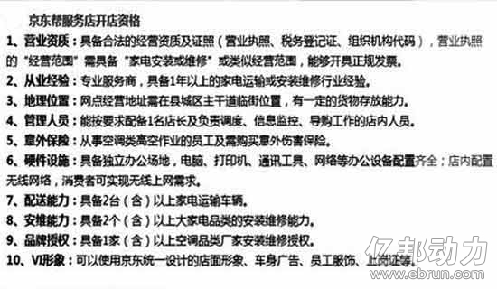 加盟細則顯示,京東縣級加盟店主要定位在4-6線縣級城市及農村消費者集中的市場。商戶必須具備大家電營銷、配送、安裝和維修四位一體的功能。店鋪選址必須選在縣城區(qū)主干道臨街位置,并且有一定的貨物存放能力。同時商戶不需要向京東提供合作費用和信息費用,只需提供2萬-5萬保證金。