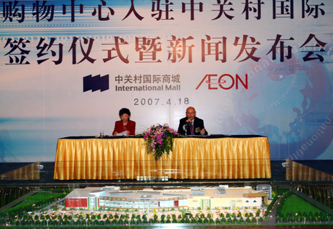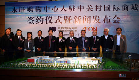 2007年4月18日上午,“永旺購(gòu)物中心入駐中關(guān)村國(guó)際商城簽約儀式暨新聞發(fā)布會(huì)”于北京長(zhǎng)富宮飯店芙蓉廳隆重舉行。亞洲零售業(yè)巨頭永旺將與中關(guān)村國(guó)際商城發(fā)展有限公司聯(lián)手打造北京首家集購(gòu)物、娛樂(lè)、休閑、餐飲功能于一體的大型多功能的“一站式”消費(fèi)服務(wù)中心—永旺購(gòu)物中心。作為第一家入駐中關(guān)村國(guó)際商城的超大型商業(yè)設(shè)施,永旺購(gòu)物中心計(jì)劃于2008年北京奧運(yùn)會(huì)前開(kāi)業(yè)。