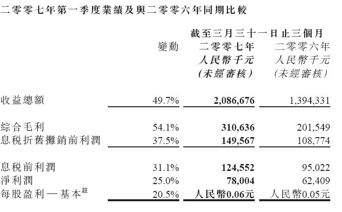 4、截至2007年3月31日止,本集團(tuán)存貨周轉(zhuǎn)期為19天,應(yīng)付帳款周轉(zhuǎn)期為88天。