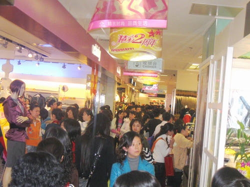 成都新世界百貨2周年店慶,室內(nèi)人潮涌動。