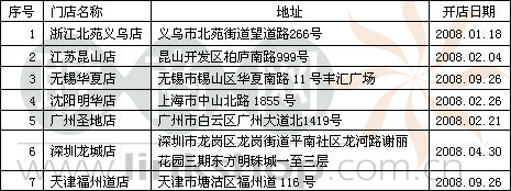 2008年,TESCO樂購在華內(nèi)地新開出7家門店。以下是詳細(xì)分布: