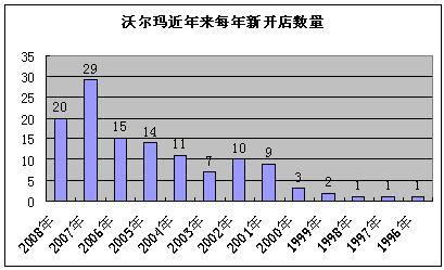 沃爾瑪2008年中國(guó)內(nèi)地新開門店20家,截至2008年12月31日中國(guó)門店總計(jì)120家。