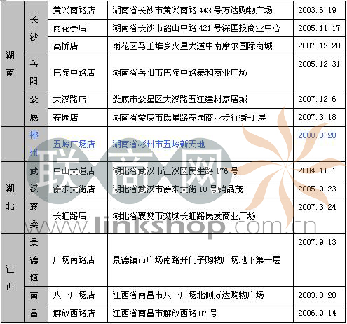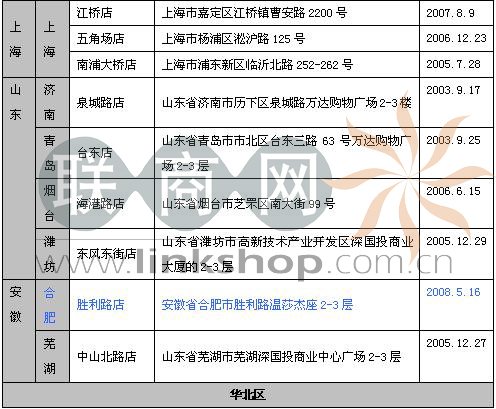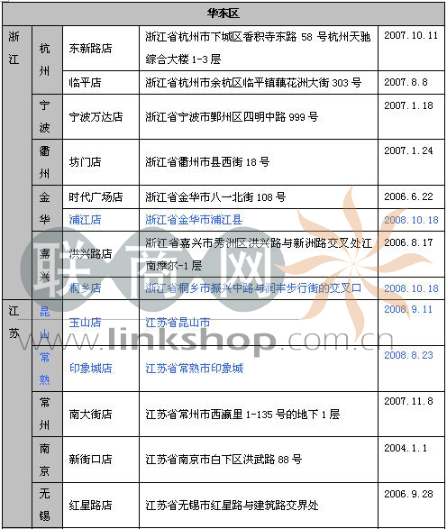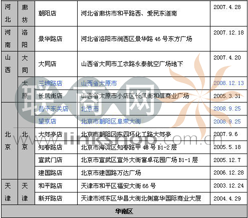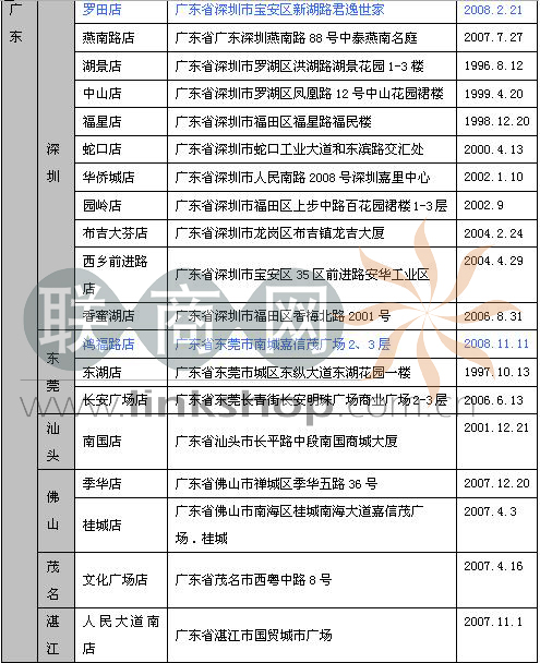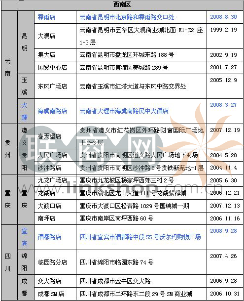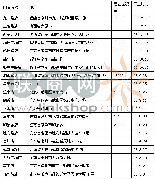 (注:其中藍(lán)色字體部分為2008年新開門店)