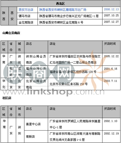 2008年沃爾瑪中國(guó)內(nèi)地新開門店20家
