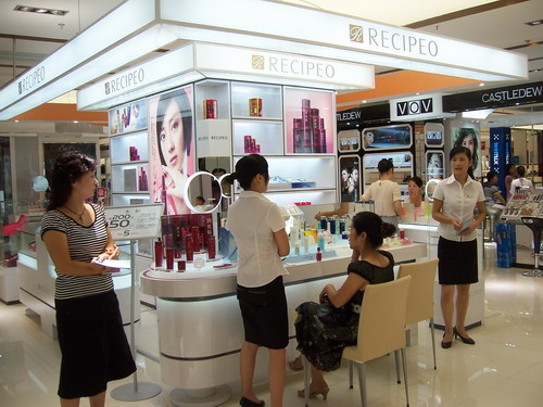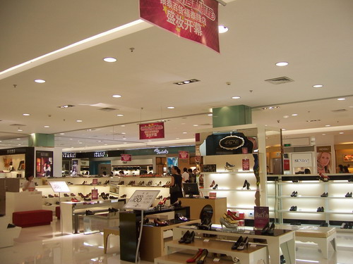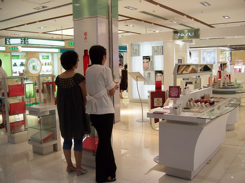 一樓流行名品館,主營化妝品、珠寶、名表、女鞋;品牌包括TUDOR、周大福、六福珠寶、潮宏基、寶怡珠寶、FED、BELLE、馬內(nèi)爾男鞋、SKAP、歐萊雅、玉蘭油、NU'U、DEBON、自然堂、羽西、佰草集、CK等;