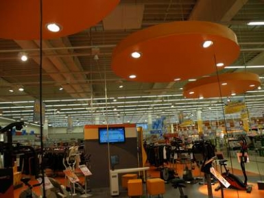同樣還是聲音控制技術(shù),在體育器材的銷售區(qū)域內(nèi),確實(shí)另外一種應(yīng)用。在跑步機(jī)的上面有一塊發(fā)音板,這樣跑步機(jī)上的人就可以聽到他自己選擇的音樂,不會(huì)打擾別人。如果你選擇自行車等戶外用品,在戶外用品區(qū)內(nèi),你可以聽到近似戶外的聲音,鳥的鳴叫等等,讓你感覺是在自然的懷抱中。如果你在運(yùn)動(dòng)產(chǎn)品區(qū)看體育賽事的電視轉(zhuǎn)播,聲音可以控制到只有你一個(gè)人聽到電視里網(wǎng)球比賽的聲音。