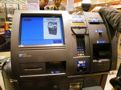 這種自助結(jié)賬機(jī)可以接受現(xiàn)金、支票、借記卡、信用卡、手機(jī)等結(jié)算方式,機(jī)器右上方的那個(gè)東西就是用來(lái)手機(jī)結(jié)算的。這東西在德國(guó)不怎么普及,據(jù)說(shuō)在日本非常普及,還有在非洲的索馬里或者津巴布韋這樣的通貨膨脹極度嚴(yán)重的國(guó)家比較受歡迎。