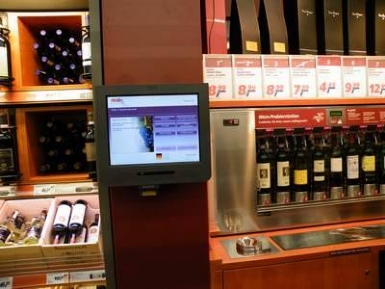 國(guó)內(nèi)超市的葡萄酒貨架前,最多的是各大酒廠的促銷人員,最主要的促銷方式是降價(jià),買幾送幾,買瓶酒送個(gè)杯子什么的。你要買的酒什么滋味,拿回家再說(shuō)吧。這個(gè)店里賣酒可以品嘗,在機(jī)器上拿一個(gè)品酒卡,一次可以品嘗6中不同的葡萄酒。這是個(gè)不錯(cuò)的方法,即節(jié)省人力,又方便了顧客。
