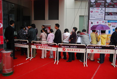 筆者在活動現(xiàn)場看到,許多消費者在門店的入口處排成了一條長龍,現(xiàn)場氛圍好不熱鬧。據(jù)了解,此次大洋百貨冠亞店VIP獨享日活動全館當季商品5折起,并且在此基礎(chǔ)上現(xiàn)金再滿250收50,滿400收100,滿800收250。如此大力度的促銷完全點燃了榕城消費者的購物激情。