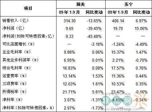 蘇寧電器、國美電器09前三季度經(jīng)營概況