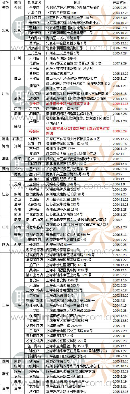(注:紅色部分為卜蜂蓮花2009年新開業(yè)的門店)