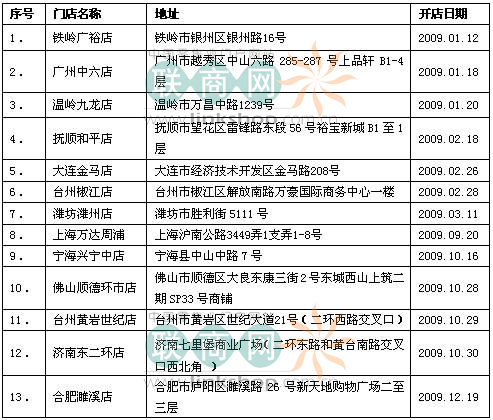 2009年,TESCO樂購在華內(nèi)地新開出13家門店,以下是詳細(xì)分布: