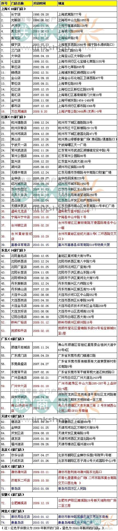 截止到2010年1月18日,TESCO樂購在華內(nèi)地新開出4家門店。以下是詳細(xì)分布: