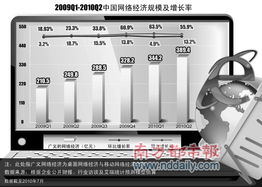 2009Q 1-2010Q 2中國(guó)網(wǎng)絡(luò)經(jīng)濟(jì)規(guī)模及增長(zhǎng)率