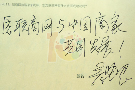 吳堅(jiān)忠在為聯(lián)商網(wǎng)題詞