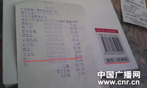 呂女士保留了手中的購物小票,仔細核對價格編碼,又到超市請工作人員重新掃描,的確在這本標明定價為“25.8元”的書上掃出了“35.3元”的售價。記者和呂女士一起來到這家沃爾瑪超市服務臺,工作人員說,問題出在條形碼標簽上。