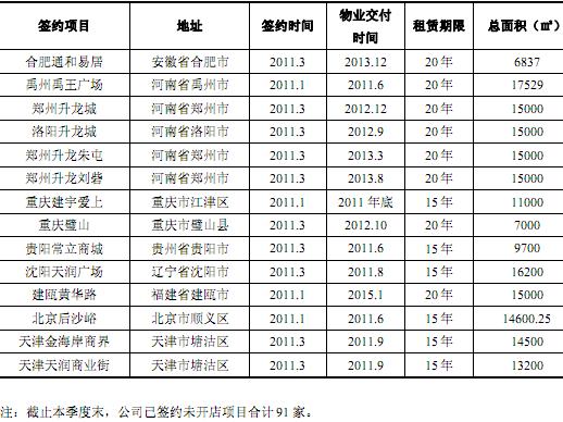 截止2011年3月31日,公司已開業(yè)門店達(dá)159家;