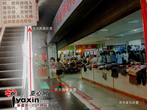 該商場一位年齡在40歲左右的經(jīng)營戶告訴記者,她看著孩子和媽媽一起上來的,孩子的媽媽在一邊挑選東西,孩子在一邊玩,“誰也沒想到孩子會去爬扶梯,也就是兩分鐘的時間,孩子就摔了下來”。