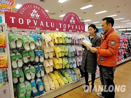 記者昨天在位于昌平的永旺店看到,持有“特慧優(yōu)”標(biāo)志的花生油、果凍、甘栗以及符合與中國住宅情況相符的厚底拖鞋、襪子等115種生活基本用品已經(jīng)開始在店里銷售。這標(biāo)志著從昨天起,永旺正式在中國大陸61家店鋪同時(shí)發(fā)售自有品牌“TOPVALU”(特慧優(yōu))商品。“TOPVALU ”商品將比同質(zhì)商品的價(jià)格優(yōu)惠20%左右。據(jù)悉,預(yù)計(jì)9月還將推出時(shí)裝類商品,年內(nèi)力爭自有商品種類擴(kuò)大至500個(gè)品種。2013年擴(kuò)充至1000個(gè)品種。