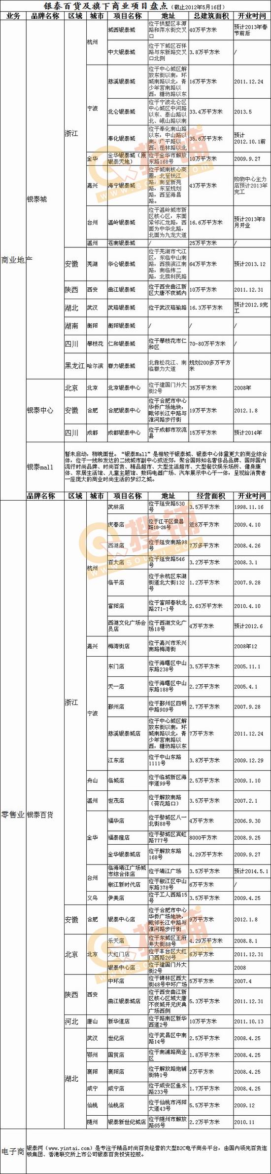 獨家:銀泰百貨及其商業(yè)項目大盤點