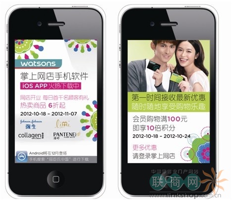 屈臣氏掌上網(wǎng)店即將在10月中旬隆重推出,原有的屈臣氏APP用戶可以直接升級(jí),其他用戶可以從各大手機(jī)軟件平臺(tái)下載。網(wǎng)店開業(yè)之初,每日前1000名顧客可獲得禮品,同時(shí)還可享受熱賣商品6折購(gòu)物優(yōu)惠,會(huì)員購(gòu)物滿100元即享10倍積分!兄弟姐妹們,跟我們一起踏上手機(jī)購(gòu)物的美好旅程吧!
