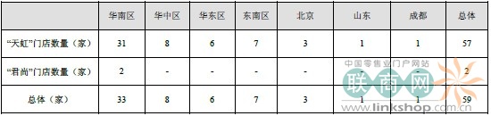 注:華南區(qū)包括深圳、東莞、惠州;華中區(qū)包括南昌、長沙、贛州、岳陽、婁底、株洲;華東區(qū)包括蘇州、杭州、湖州、嘉興、紹興;東南區(qū)包括廈門、福州、三明、泉州。門店數(shù)量中包括直營店和特許加盟店,4家特許加盟店分別為華南區(qū)1家、東南區(qū)2家、山東1家。