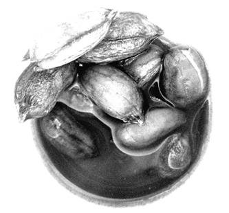 圖為:浸泡過(guò)的黑皮花生還原成“紅衣本色”