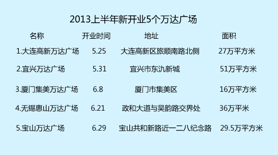 下半年計(jì)劃開業(yè)13個(gè)萬(wàn)達(dá)廣場(chǎng)