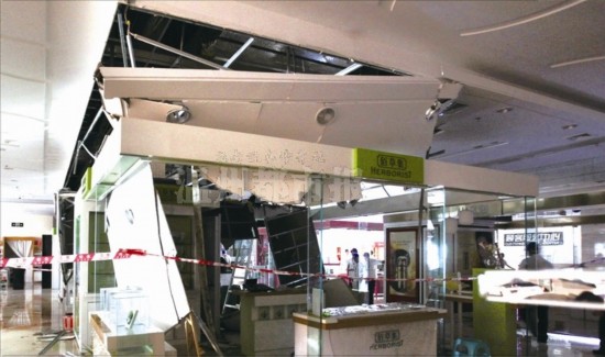 萬(wàn)達(dá)百貨一樓天花板坍塌現(xiàn)場(chǎng) 蔣超/攝