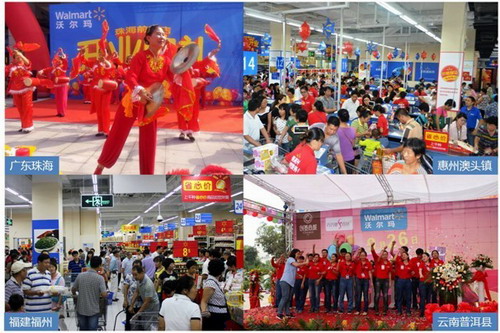 沃爾瑪在福建福州、廣東珠海、云南普洱縣、及惠州澳頭鎮(zhèn)的四家全新購(gòu)物廣場(chǎng)開(kāi)業(yè)盛況