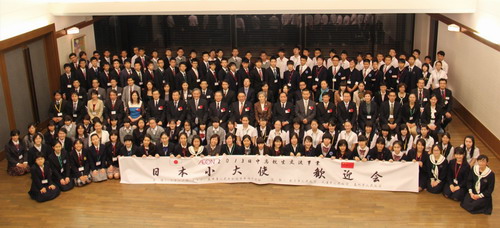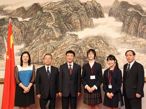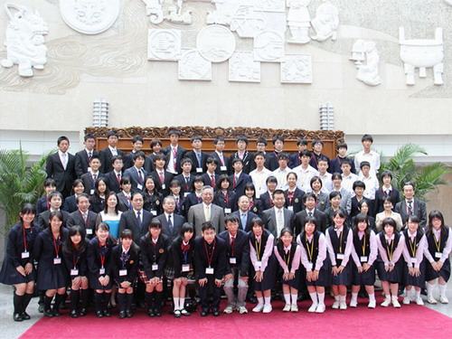 10月10日,北京市人民政府副秘書(shū)長(zhǎng)徐熙先生、前中國(guó)駐大阪總領(lǐng)事、新中日友好21世紀(jì)委員會(huì)秘書(shū)長(zhǎng)王泰平、中國(guó)外交部發(fā)言人、新聞司副司長(zhǎng)華春瑩女士分別親切會(huì)見(jiàn)了本次交流活動(dòng)的日本高中生代表,并與代表們合影留念。當(dāng)晚,在日本駐華大使館為來(lái)華的日本高中生舉辦了隆重的歡迎晚會(huì),日本國(guó)駐中國(guó)特命全權(quán)大使木寺昌人先生出席并致歡迎詞。