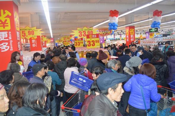 超市的每個(gè)角落里都是選購商品的市民,超市內(nèi),優(yōu)質(zhì)、低價(jià)、齊全的商品被現(xiàn)場一撥又一撥的市民搶購,營業(yè)員都在不停地補(bǔ)貨,就連家樂福超市邊的餐飲店、飾品店也跟著沾光,人流涌動(dòng),生意興隆。