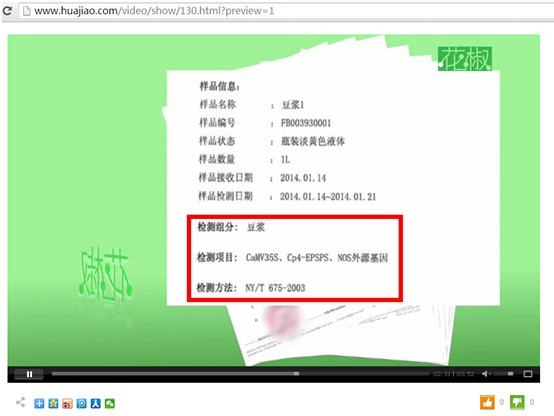 據(jù)花椒網(wǎng)“花椒實驗室”視頻內(nèi)容顯示,該網(wǎng)站與國內(nèi)第三方檢測機構——華測檢測一道對市面上各大品牌的豆?jié){產(chǎn)品進行轉(zhuǎn)基因檢測后發(fā)現(xiàn),肯德基豆?jié){中含有轉(zhuǎn)基因大豆成分。