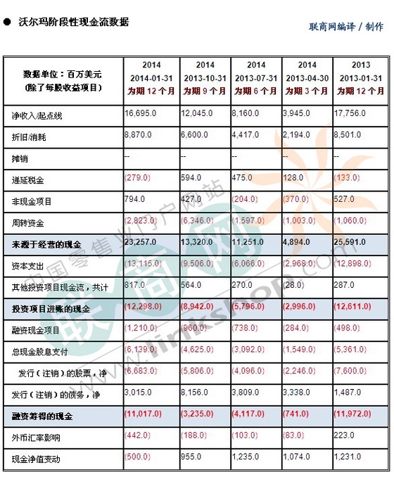 【獨(dú)家】2014沃爾瑪階段性收入&現(xiàn)金流報(bào)表