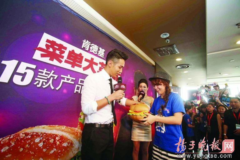 在肯德基超級星賣家明星代言活動中,柯震東成為“漢堡星賣家”,而他當(dāng)天剛剛在現(xiàn)場亮相,熱情的“粉絲”們便送出了一個超級漢堡抱枕,面對“粉絲”送出的貼心大禮,柯震東也給現(xiàn)場抽取的三位幸運(yùn)“粉絲”送出了禮物,不僅有抱枕、花束,還有肯德基的新品之一——培根雞腿燕麥堡。