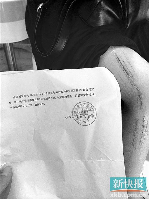 當時,她行至擺放榴蓮的柜臺,突然一名正在擺放榴蓮的送貨員拿不穩(wěn),將其中一個超過6斤重的榴蓮滾了下來,堅硬的外皮在她腿上劃出了數(shù)道長長的血痕。送貨員自知闖禍后,連聲向李小姐道歉。李小姐在超市員工的陪同下,前往附近醫(yī)院就診,并于次日接種了破傷風疫苗。