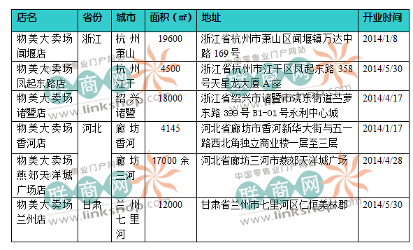 以下是聯(lián)商網(wǎng)整理統(tǒng)計的,物美上半年新開的大賣場一覽: