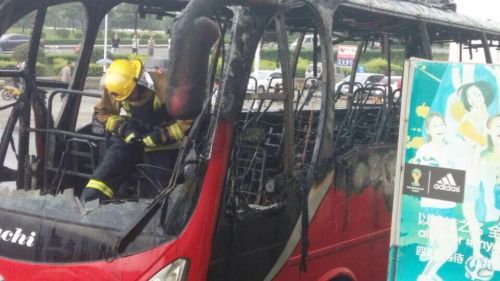 9月3日早上7點(diǎn)30分左右,在泰安卜蜂蓮花超市門前,一輛超市班車突然起火,大火迅速將整輛車點(diǎn)燃,消防隊(duì)員趕到現(xiàn)場后迅速將火撲滅。被火燒過后,班車內(nèi)只剩下鐵架子,幸運(yùn)的是,大火沒造成人員傷亡。司機(jī)稱是自燃。