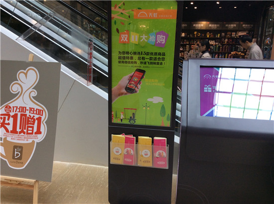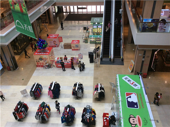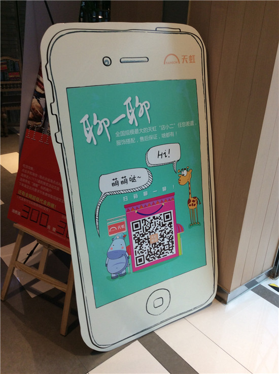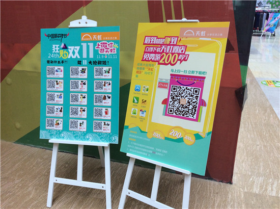 聯(lián)商網(wǎng)消息:在杭州五福天虹購物中心A座,消費(fèi)者買到了12元的羊毛衫。今天是中國購物節(jié)的第一天,聯(lián)商網(wǎng)記者在天虹購物中心A座看到,各大專柜都有不同力度的促銷。在B座,天虹與淘點(diǎn)點(diǎn)合作,消費(fèi)者不僅可以購買代金券在天虹的餐飲店使用,當(dāng)天支付滿2800元還會(huì)有自行車贈(zèng)送。在天虹購物中心隨處還可以看到掃碼辦微卡、微信購物、微信支付等活動(dòng)推廣。截止記者發(fā)稿,天虹方面沒有對中國購物節(jié)活動(dòng)的客流和銷售情況做任何回應(yīng),預(yù)計(jì)明天會(huì)有數(shù)據(jù)發(fā)布。