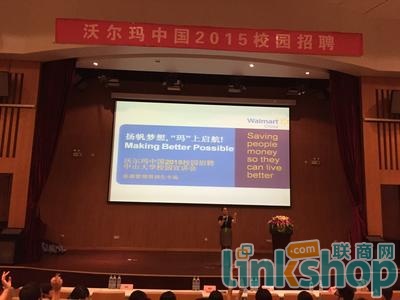 沃爾瑪中國人才引進高級總監(jiān)陳曉霞向?qū)W生們分享道:“沃爾瑪全球員工總數(shù)約220萬名,我們致力通過實體零售店、在線電子商店、以及移動設(shè)備移動端等不同平臺不同方式來幫助世界各地的人們隨時隨地能夠節(jié)省開支,并生活得更好。沃爾瑪于1996年進入中國,經(jīng)過18年在中國的發(fā)展,我們在中國已擁有超過十萬名員工。沃爾瑪作為全球零售巨頭,我們非常注重對新生代人才的培養(yǎng)與發(fā)展。”