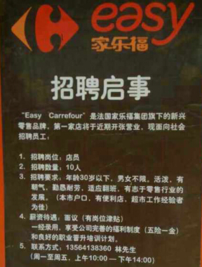 聯(lián)商網(wǎng)記者獲悉,家樂福中國將涉足便利店。就在近日,家樂福發(fā)布招聘啟事,旗下新興零售品牌“easy 家樂福”將于近期開張營業(yè),地點(diǎn)在上海。
