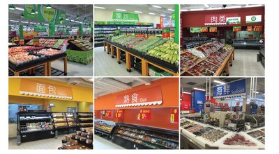 昆明城市升級打造全新的生鮮區(qū)域,采用清晰鮮明 的色彩引導顧客快速定位商品
