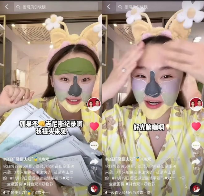 11月3日,在“搭搭”的挑戰(zhàn)面膜吉尼斯紀(jì)錄直播中,這款由搭搭和德瑪貝爾共同研發(fā)的新品軟膜,“上架3分鐘,庫(kù)存全部賣空”。
