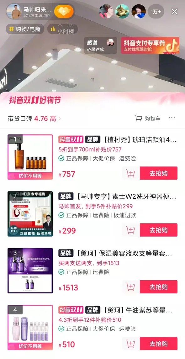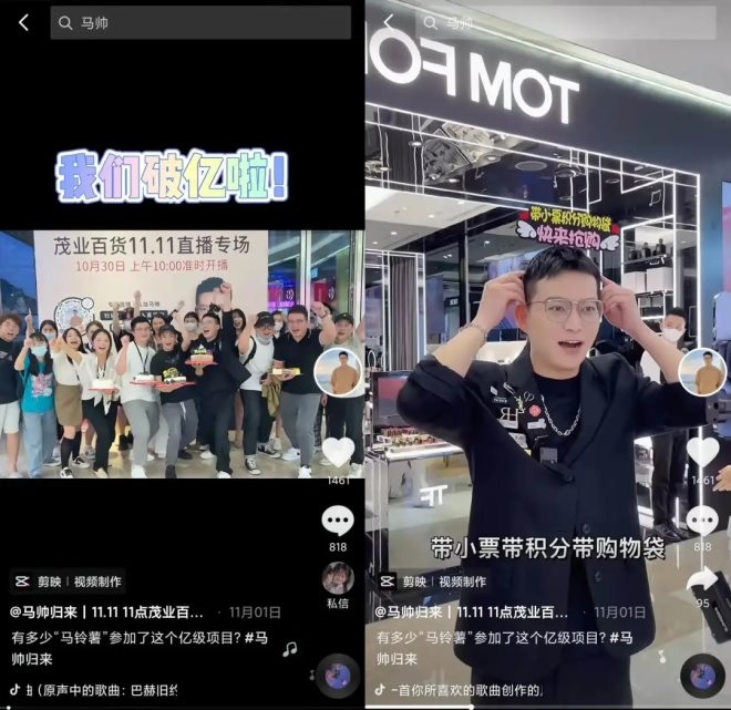今年以來,馬帥攜手茂業(yè)百貨多次舉辦專場(chǎng)直播,抖音雙11好物節(jié)期間,更是取得了一個(gè)突破性的直播成績(jī),打破馬帥個(gè)人帶貨記錄。