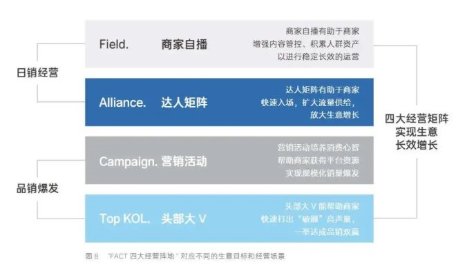 今年,在總結(jié)諸多商家、主播的直播經(jīng)驗(yàn)后,抖音電商推出了FACT四大經(jīng)營(yíng)矩陣。流量、轉(zhuǎn)化、沉淀是電商經(jīng)營(yíng)的基本三要素,F(xiàn)ACT的本質(zhì)就是希望通過整合商家、達(dá)人以及平臺(tái)的各方資源,對(duì)商家的經(jīng)營(yíng)行為進(jìn)行持續(xù)校準(zhǔn),進(jìn)而實(shí)現(xiàn)雪球式的快速增長(zhǎng)。