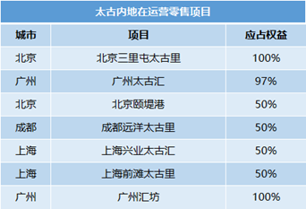 數(shù)據(jù)顯示,太古目前在國內(nèi)共有7個零售項目,其中北京頤堤港、上海興業(yè)太古匯、前灘太古里、成都遠洋太古里等均為合作項目,太古占50%及以上的權(quán)益并負責運營。