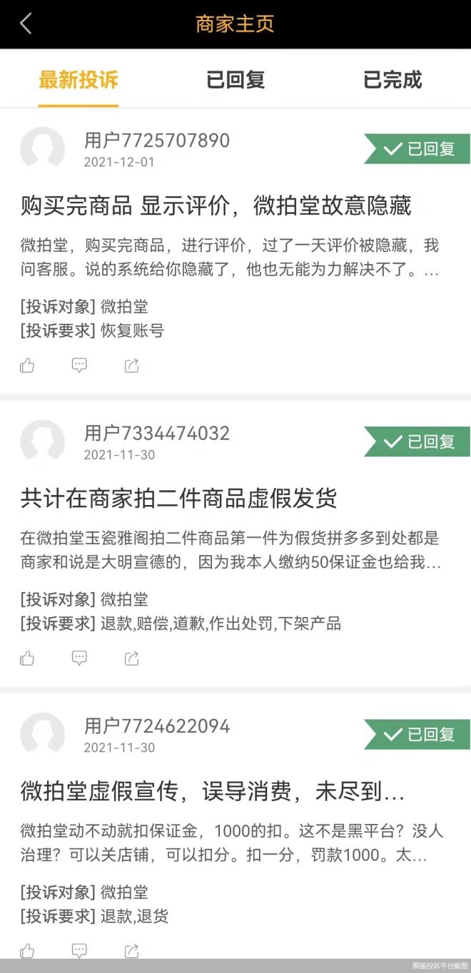 然而,一起起消費(fèi)者購(gòu)買到假貨、瑕疵品的投訴,一件件商家費(fèi)用被亂扣的事例,讓頻頻打出“保真”招牌的微拍堂失了真。