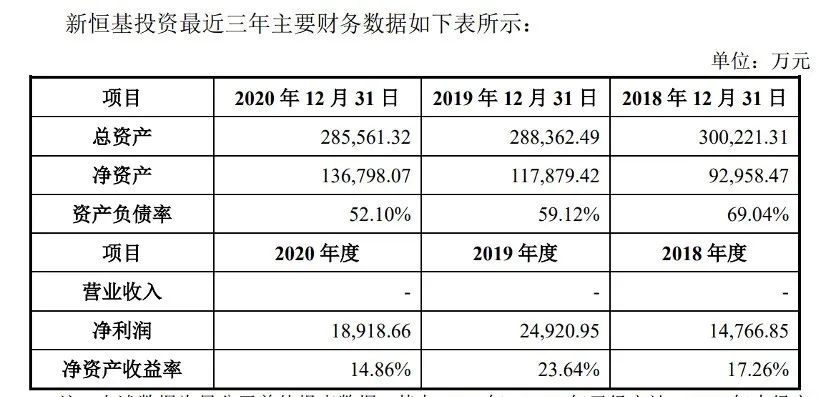 數(shù)據(jù)顯示,2018-2020年,新恒基投資的營(yíng)收未知,凈利潤(rùn)卻坐了一個(gè)“過(guò)山車”,分別為1.47億元、2.49億元、1.89億元。