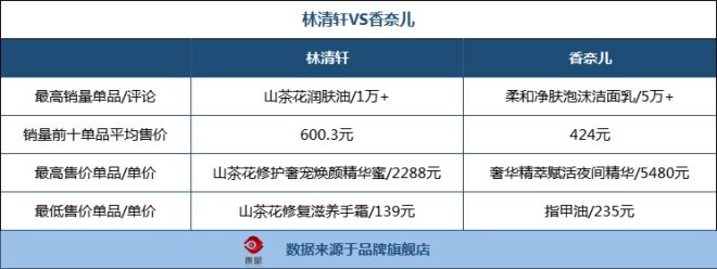 但值得注意的是,林清軒銷量前十的單品平均售價為600.3元,香奈兒則為424元,且香奈兒熱銷前十的產(chǎn)品,90%為彩妝,僅有一款潔面護膚品(俗稱山茶花潔面)。